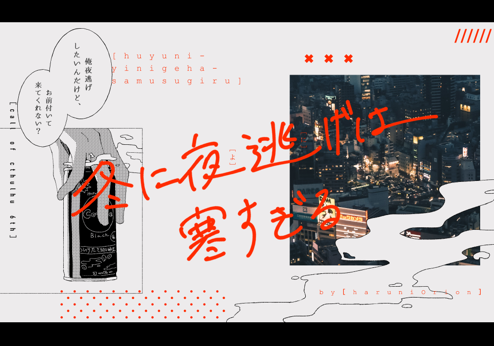 ▮겨울의 야반도주는 너무춥다. #크툴루의부름 #타이만 ♬ 날짜: 25.06.14 마스터◆ KPC: 미즈하시 아키야 [뤀님]플레이어◆ PC : 사카이 류이치[샤셋] COMMENT ▼ 목록 SKIN BY ©Monghon + RXS